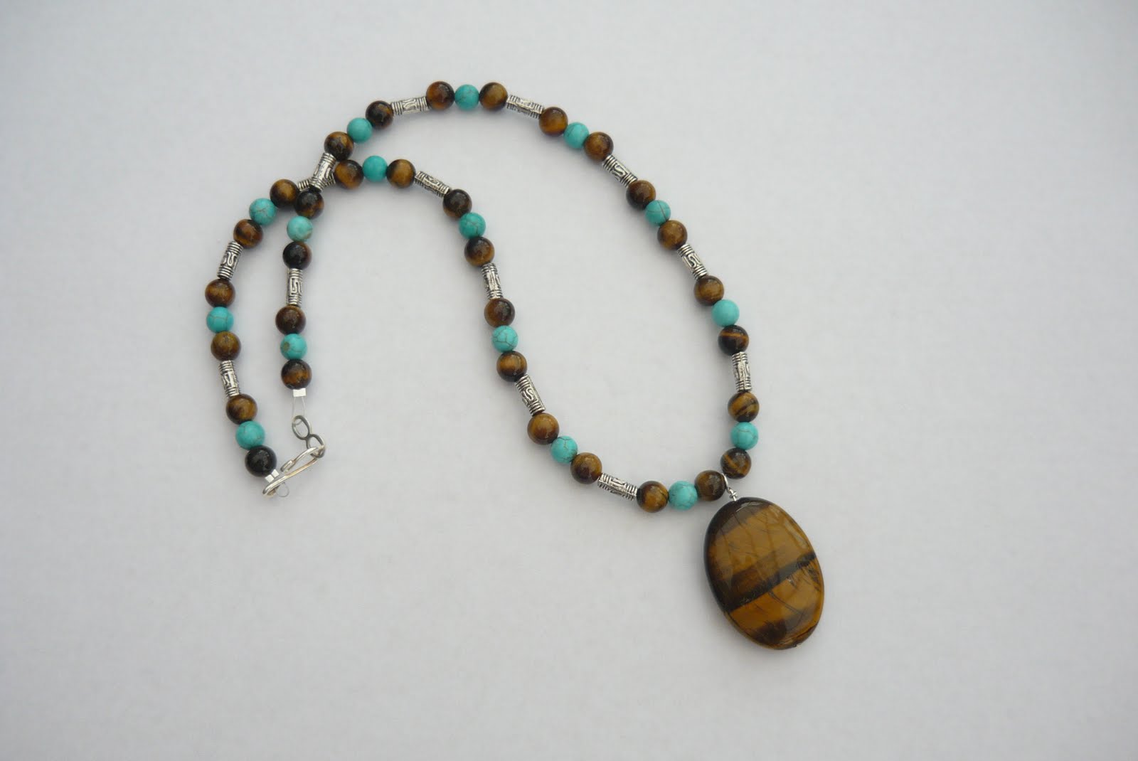 Here is another not on my website but again in my folksy shop, this is one of my favourite pieces. It's turquoise and tiger eye with tibetan silver spacers.